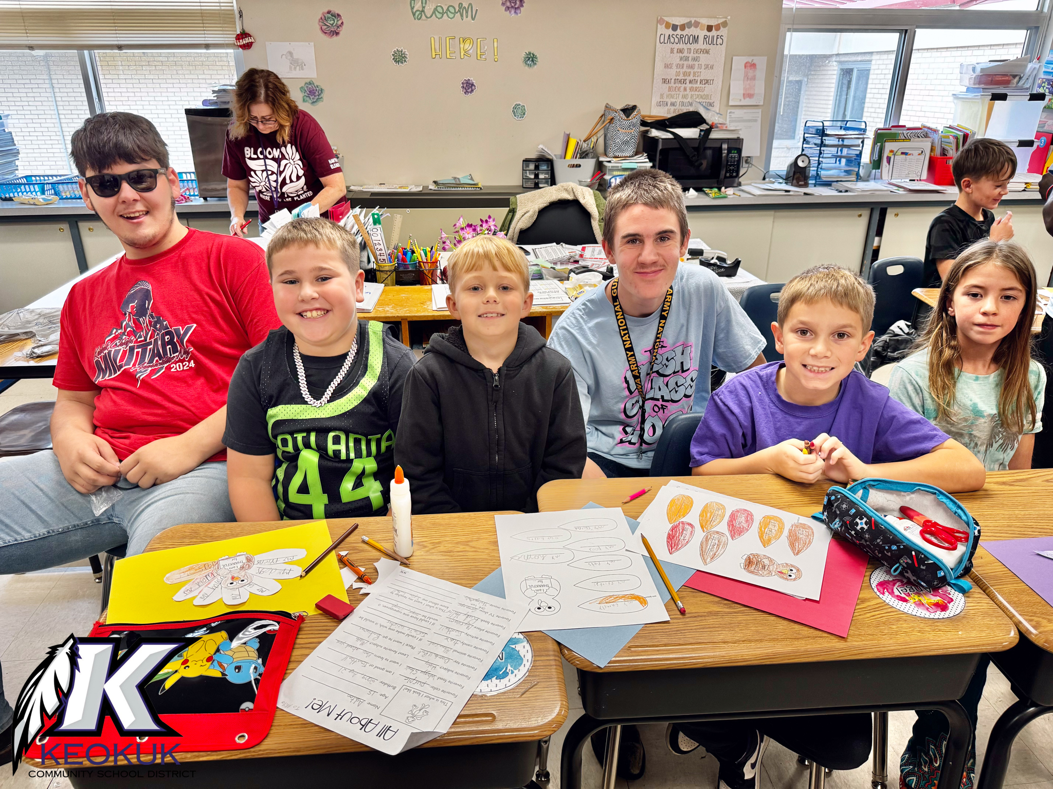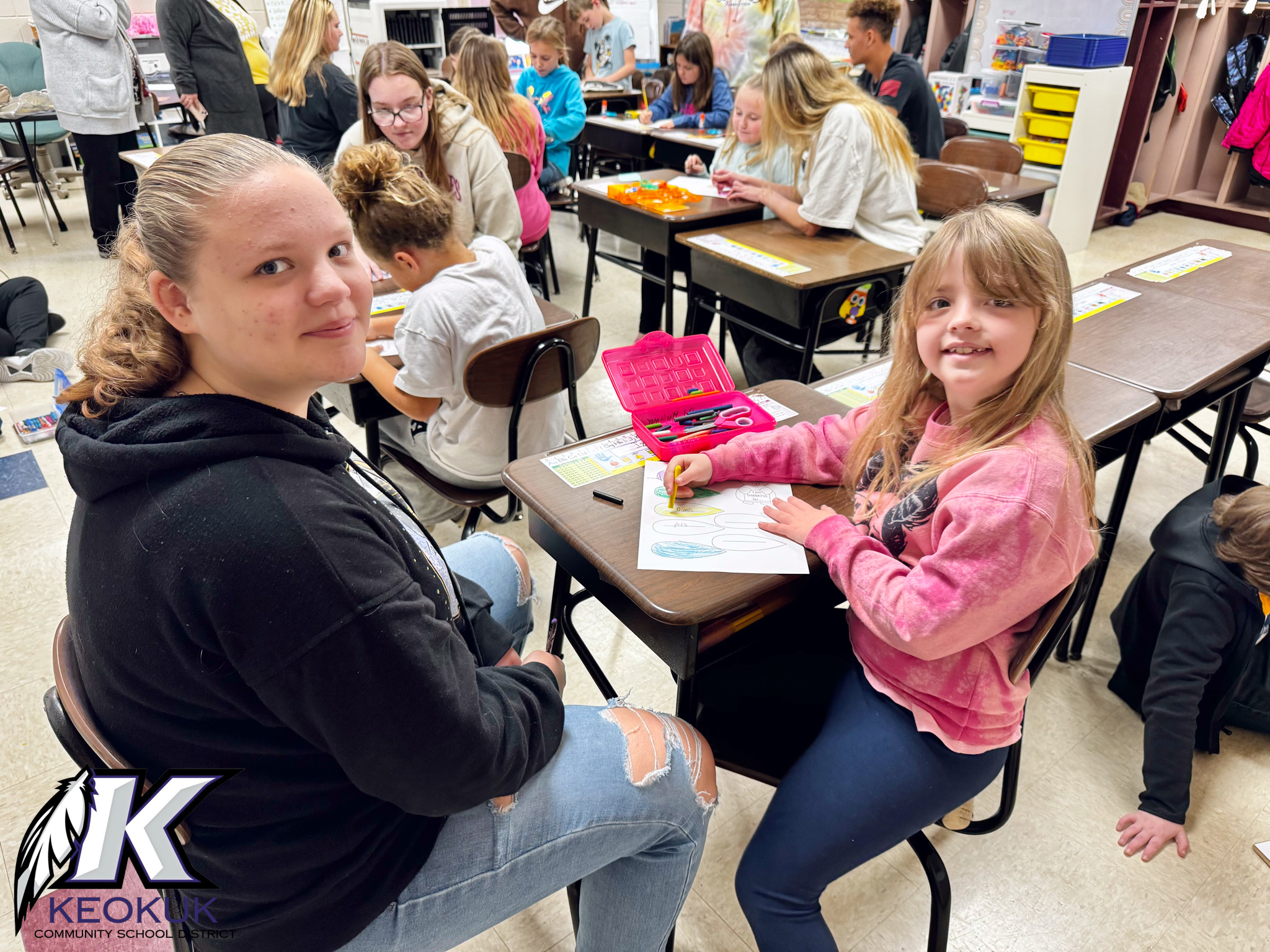 The ninth and tenth grade iJag students have had the opportunity to connect with their pen pal buddies from Mrs. Umthum’s third grade class and Mrs. Nemecek’s second grade class. The KHS students helped their younger buddies create festive Thanksgiving placemats and read together.